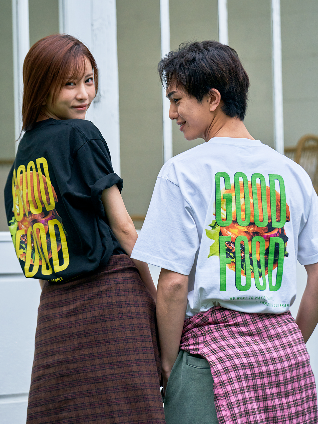 GOODFOODのブランドメッセージ「WE WANT TO MAKE PEOPLE AROUND THE WORLD HAPPY THROUGH OUR BRAND」と共に、食の喜びを身にまとう贅沢。デイリーユースはもちろん、フードイベントやカジュアルな集まりで差をつけたい方にもぴったり。