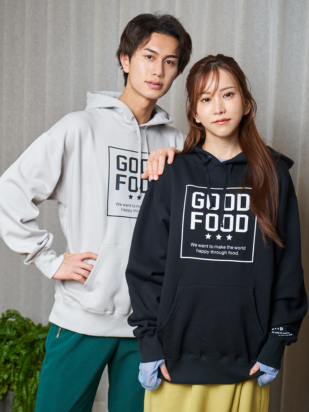 The front print is a simple yet impactful design featuring the "GOODFOOD" logo and three stars.