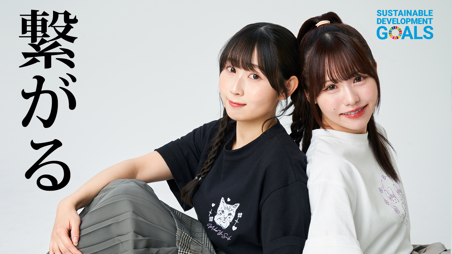 そんな想いを込めたテーマのもと、今回はSEK48のメンバー佐藤佳穂さんと井上瑠夏さんのお二人にTシャツのデザインを監修していただきました。テーマ「繋がる」には、世界中のファンと心を通わせ、たくさんの笑顔を届けてきたお二人の姿とも重なります。