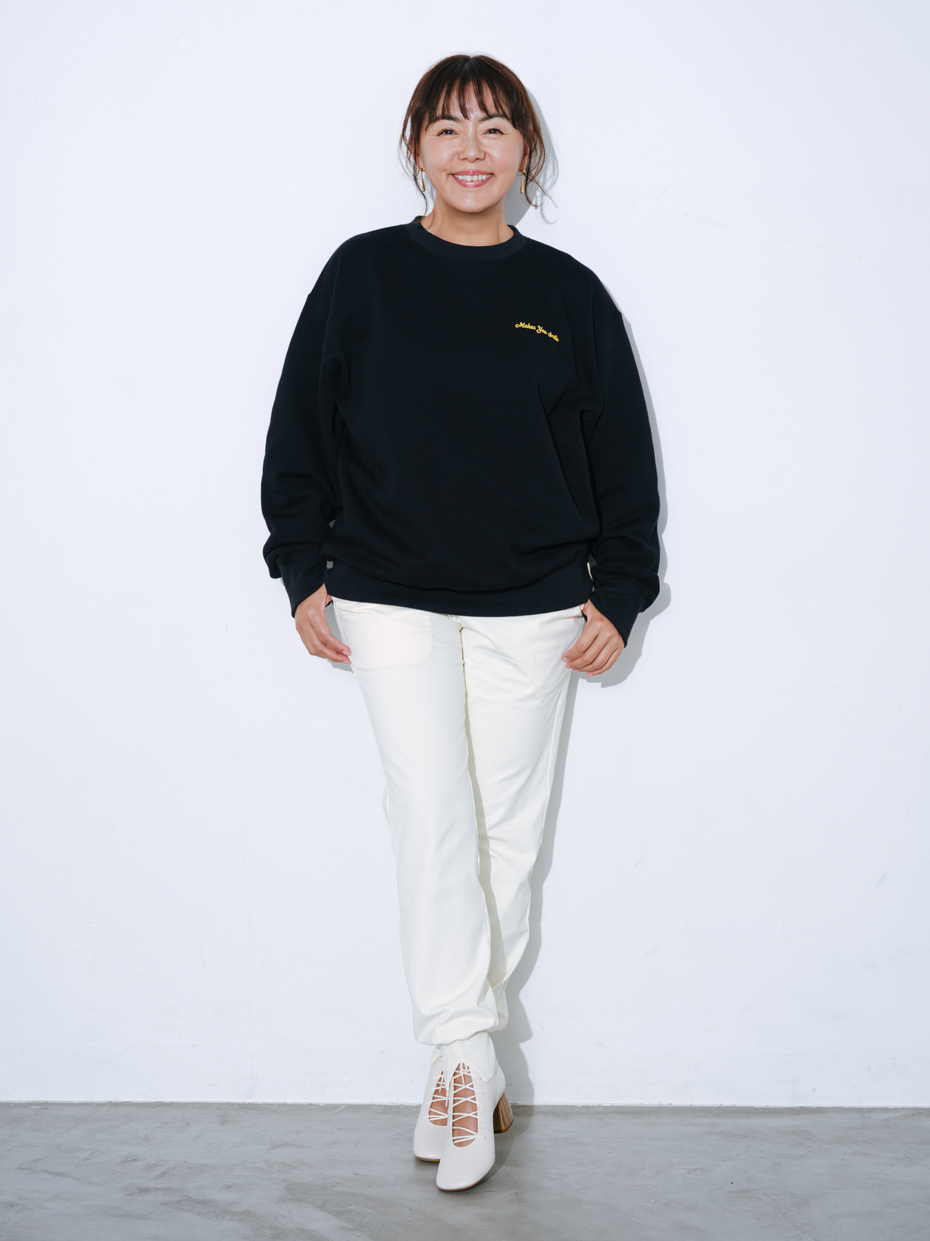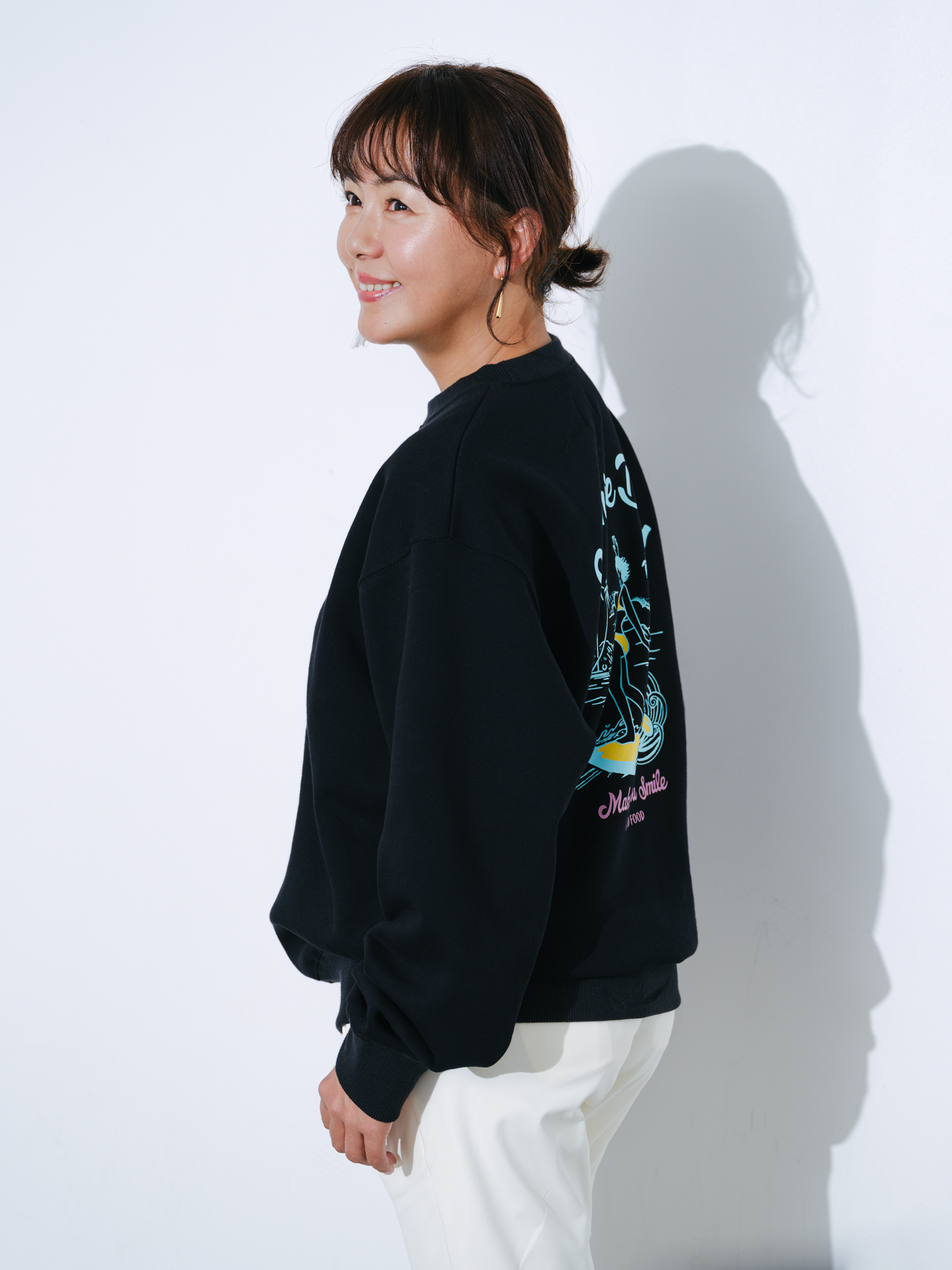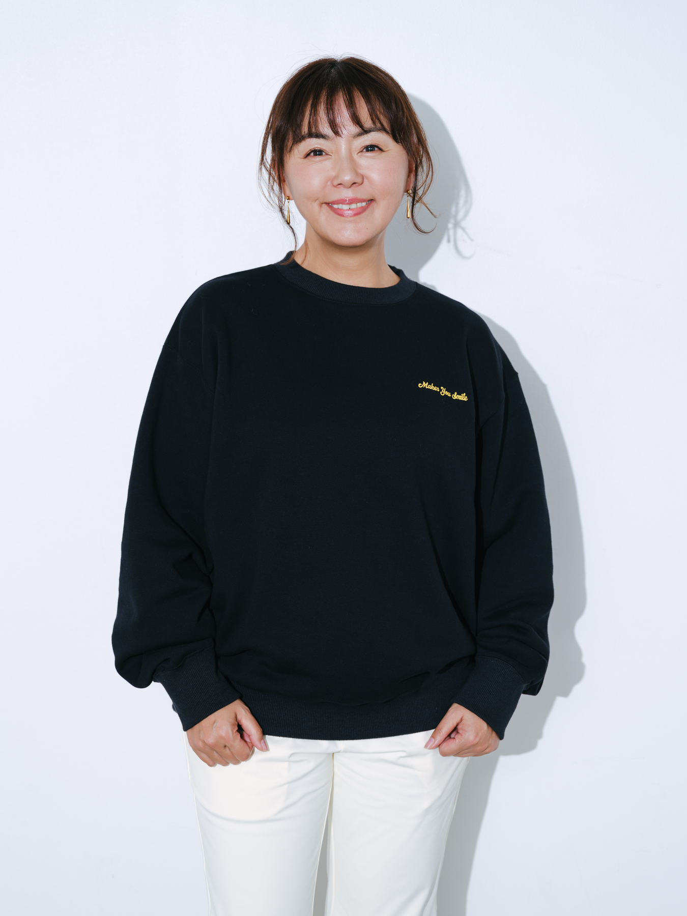 太陽の光と、やさしい笑顔が重なる一枚。 田中律子さん × Makesyousmile 第3弾コラボレーション。 テーマは「SunshineDays」。静かな強さと、やさしい前向きさを併せ持つブラックスウェット。深みのあるブラックに、 海・太陽・自然を感じるグラフィックが映え、大人のリラックススタイルを完成させます。一日の終わりにふと着たくなる、肩の力が抜けて、心が整うような存在。自然を守り、自然と生きる。田中律子さんの活動と、Makesyousmileの想いが重なった「光をまとう」スウェットです。忙しい日々の中でも、この一枚が、あなたの日常をそっと照らします。